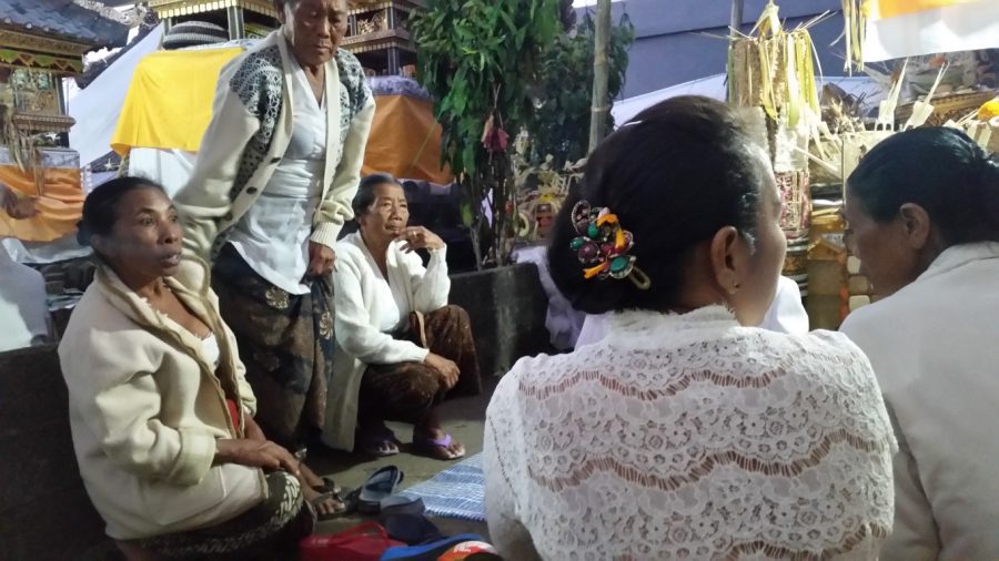Bizi içeriye davet eden adam, şuraya outrun buraya oturun diye farklı farklı yerler gösterdi. Bu kadar gariplik yeter deyip bir süre sonra gitmeye karar verdik. İnsanların dini törenleri sonuçta, herkes beyaz giyinmiş, biz kara koyun gibi aralarında. Ortada ne döndüğünü de anlayamıyoruz. Biraz garip hissettik kendimizi. Sarunglarımızı emanet aldığımız yere geri bırakıp teşekkür edip ayrıldık. İlginç ve güzel bir deneyim oldu bizim için bu; Bali’nin bir uzak dağ köyünde zorla kendimizi davet ettirdiğimiz bir dini törende yer alacağımız aklımıza gelmezdi 🙂