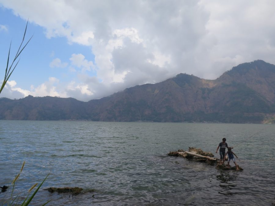 Köylüler pek bir neşeli, sıcakkanlı burada. Gerçi daha önce de defalarca söylediğim gibi Bali insanın genel özelliği bu. Yolumuzu yine google navigasyon ile bulmaya çalışıyoruz ve sayesinde yine kaybolduk tabi ki. Kestirmeden götürecek diye düşman başına yollara soktu bizi. Yol değil keçi patikası, motorla zıplaya zıplaya ilerlermeye çalışıyoruz. Bir süre bu işkenceyi çektikten sonra anladık ki bu yol bir yere gitmiyor 🙂 Zaten yolda bize şaşkın şaşkın “ne işi var bunların burada” imalarıyla bakan yerlilerden pek doğru bir yolda gitmediğimizi anlamıştık. Aynı yoldan aynı işkenceyle zıpzıp geri dönüp bir şekilde bulduk yolumuzu Batur köyü için.