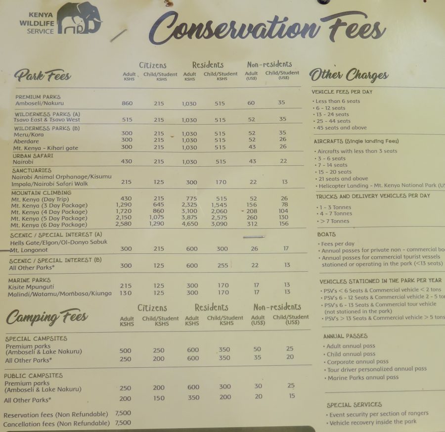 Tsavo East National Park’ın girişinde ödememizi yaptık. Yanımdaki arkadaşlarım Kenya vatandaşı olduğun için onların ödemesi gereken fiyat 5 dolar, benim ödemem gereken fiyat 52 dolar. ( Bana hiçbir şey ödetmediklerini söylemiş miydim? Böyle bir misafirperverliği ben hiç bir yer görmedim.Beni buradaki arkadaşlarıyla tanıştıran Leyla’ya nasıl teşekkür etsem az. )