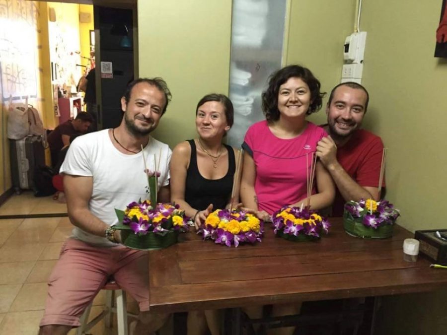 Bizim de hostelde bir krathong (sepet) yapma denememiz oldu. Böylece el işinde inanılmaz yeteneksiz olduğumu cümle aleme duyurmuş oldum 🙂 Son anda çiçek miçek ekleyerek toparladım gerçi biraz 🙂 Bu sayede Gökhan’ın anaokulundan kalma becerileri de dışa çıkmış oldu, adam doğuştan krathongçu çıktı 🙂