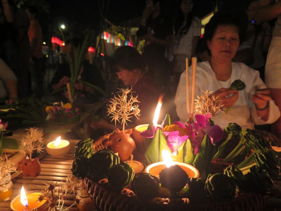Sokaklar krathong yapan insanlarla dolup taşıyor. Bu güzel teyze muz yapraklarından gül yapıp verdi bana “barış için” diyerek 🙂
