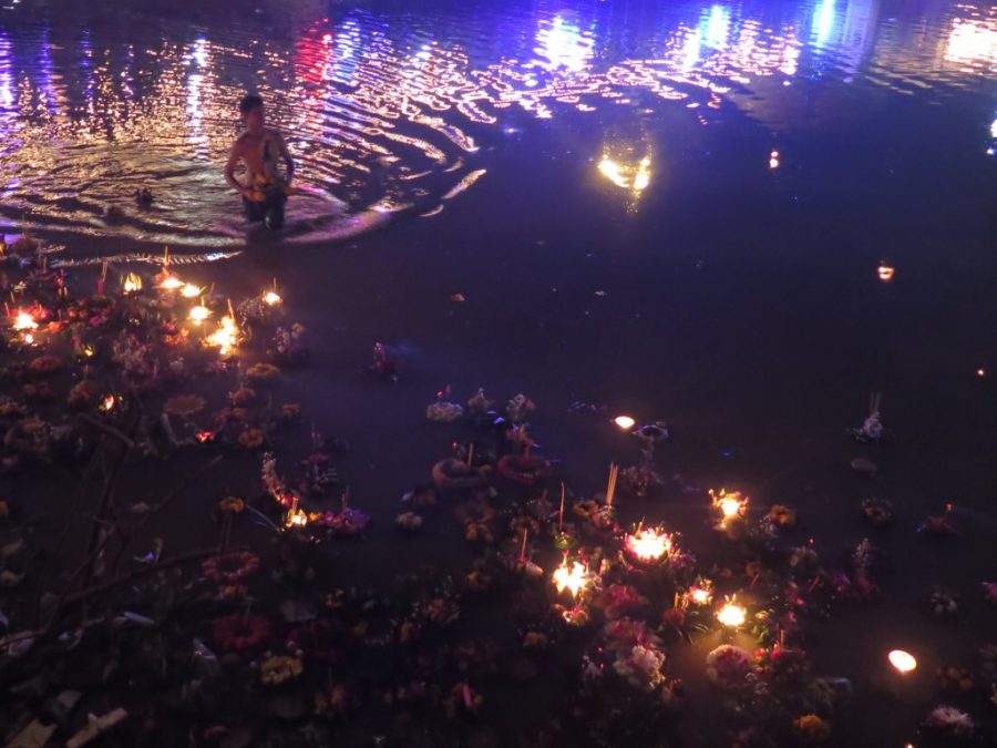 3.gecemizde artık 3 gün sürecek olan Loi Krathong festivali başlıyordu. Güzellik yarışması ve geçit törenini izledikten sonra sepetleri suya bırakarak dileklerde bulunduk. Tabi o kalabalığın içinde birbirimizi kaybediyor, ilerleyen saatlerde tekrar buluşuyoruz.