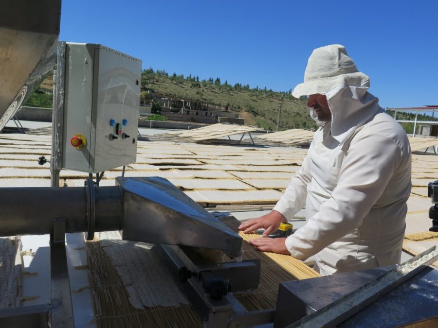 Yeni usul tarhana yapımında serim için makineler kullanılıyor.