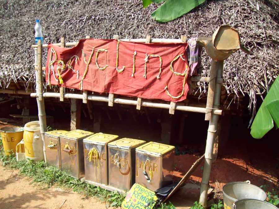 Yemekler yendikten sonra her kes kendi tabağını yıkamakla sorumlu, deteryan kullanmıyoruz tabi ki. Temizlik için kül kullanıyoruz, aşağıda gördüğünüz üç kovanın ilkine önce daldırıyoruz, sonra kokonat dallarından yapılan süngerimizi küle daldırıp temizliyor sonra her üç kovadan da geçirip sirkeli suyun içinde bekletiyoruz: