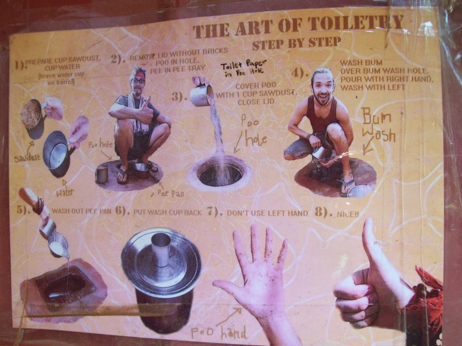 Tuvaletlerde de geri dönüşüm uygulanıyor. Şöyle ki küçük ve büyük tuvaletimizi yaptığımız delikler farklı. Kakamızı yaptıktan sonra su değil kum döküyoruz, daha sonra bu dışkılar belli bir süre toprağa gömülü olarak beklettildikten sonra gübre olarak kullanılıyor.