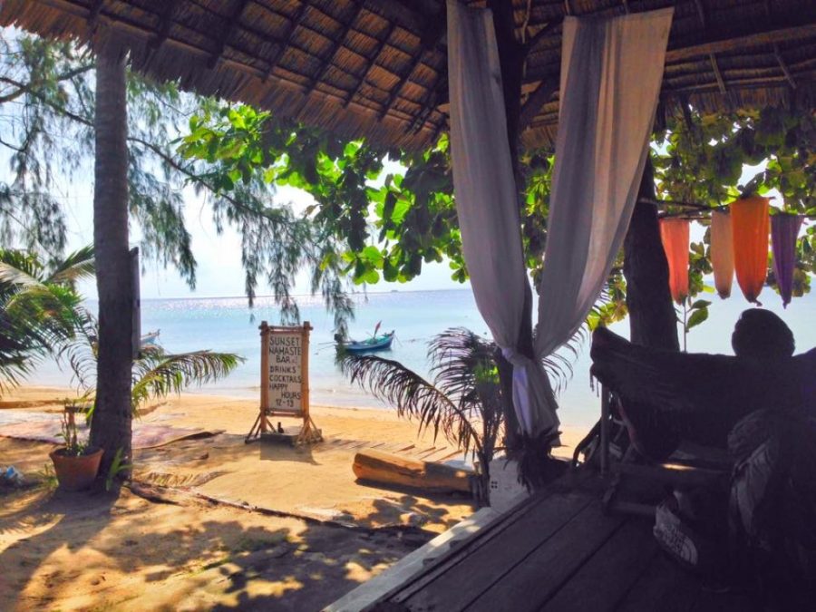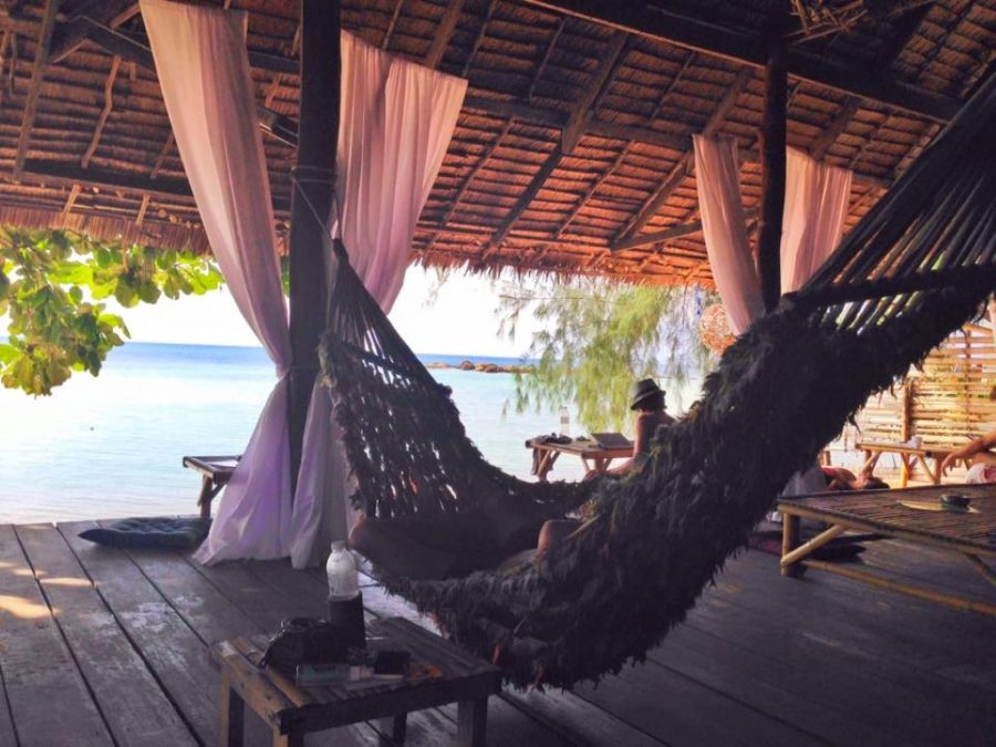 Gittiğimizde saat gece 10 civarı olduğu için pek anlayamadım bungalowun bulunduğu mekanın güzelliğini. Sabah uyanında gördüm ki meğer deniz dibimizdeymiş. Deniz, kum, hamak… işte benim huzur tanımım 🙂 Kaldığımzı yerin adı Haad Chao Phao.