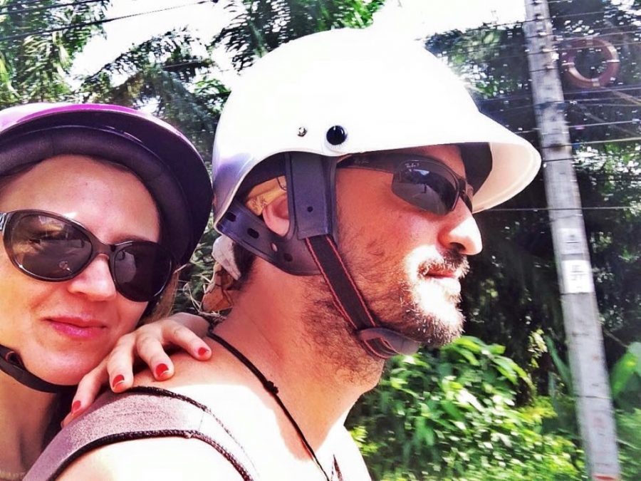 Adada taksiciler gideceğimiz yere kişi başı 400 bahtan bırakmayı teklif etti, sonra 300 bahta indi. Tabi ki bu parayı vermedik taksicilere. Gittik hemen yakın civardaki motorcudan bir motor kiraladık günlüğü 150 bahttan. İki büyük sırt çantası, iki küçük ( pek sayılmaz ) çanta ve biz. Bir motora onca şey sığar mı demeyin sığdı 🙂 Yavaş yavaş, tintin mintin gittik.