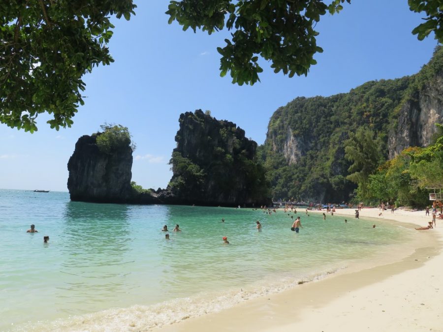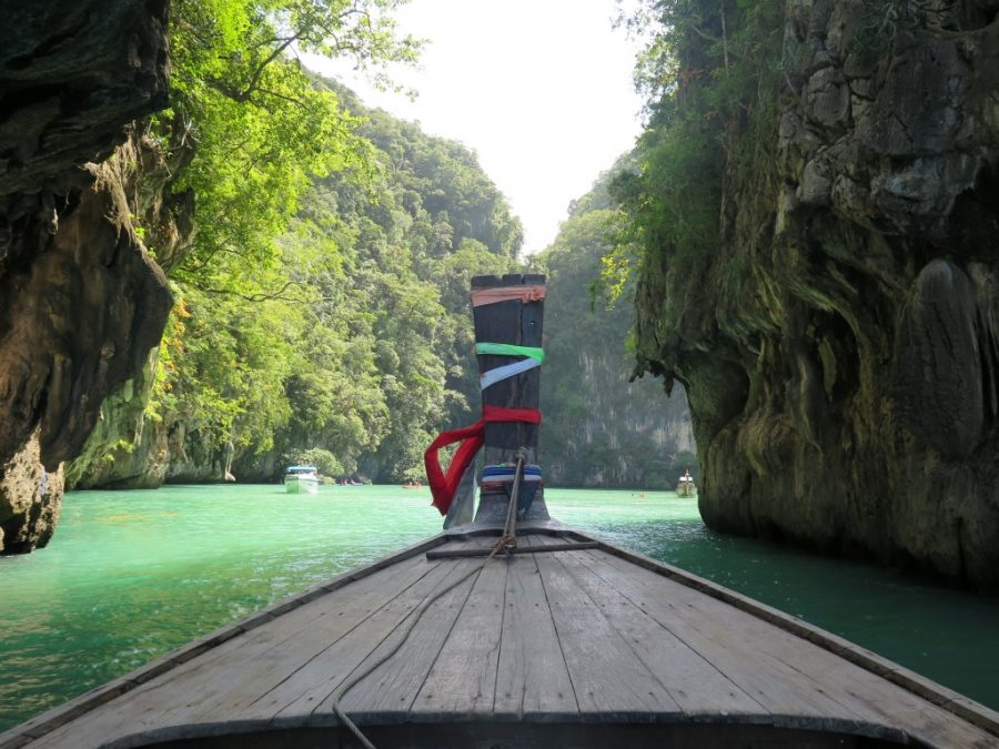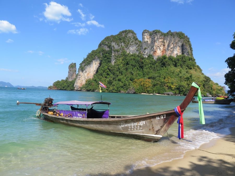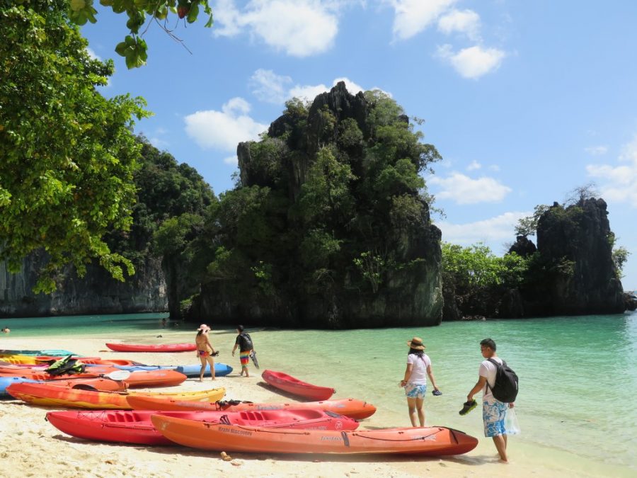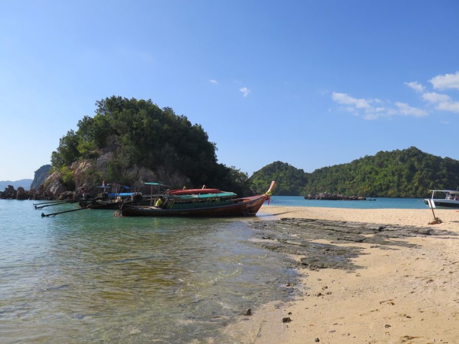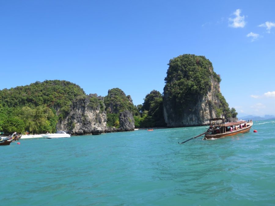 Krabi’ye gelip de adaları görmemek olmaz dedik, aslında ben dedim Gökhan da e görelim madem dedi 🙂 Senelerdir hayatında hiç tura katılmamış gezgin adamı “ada turu”na katılmaya ikna ettim çünkü turlarla gittiğimizde tek başımıza bilet almaktan daha ucuza gelecekti… Kaldığımız hostelin sahibi Nui bize tur ayarlayabileceğini söyledi. Ertesi gün tam da Tayland’ta alışmış olduğumuz şekilde; bize söylenen saatten 1 saat sonra geldi servis bizi almak için. Ada turlarında “speed boat” ve “long tail” diye iki seçenek var. Long tail yani uzun kuyruk tahta gemiler daha ucuz olduğu için onu tercih ettik tabi ki. Tur broşürlerinde “Long islands” yazan tura katılıyoruz. Broşürlerin üzerinde 1000 baht yazıyor ama bizim pazarlığa başlamıza gerek olmadan 700 baht’a düşüyorlar direk. (55 lira civarı). Tur sabah 9’da başlıyor, 5 adaya götürüyor ve öğlen yemeği veriyor ve 3 civarı geri dönüş.