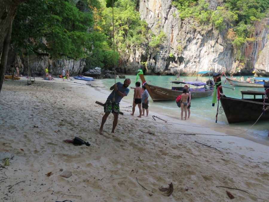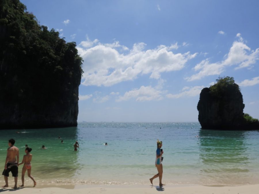 İkinci durduğumuz yer “Hong adası”. Hong adası doğal koruma alanı olduğu için girişte de her birimizden 300 baht para alıyorlar, sürpriz oluyor bize bu da… Tüm kalabalıklığına rağmen ben bayıldım bu adaya. Gökhan’ın turla geziyor olmaktan kaynaklı huzursuz hallerine rağmen ben keyif aldım bu güzelliklerden 🙂