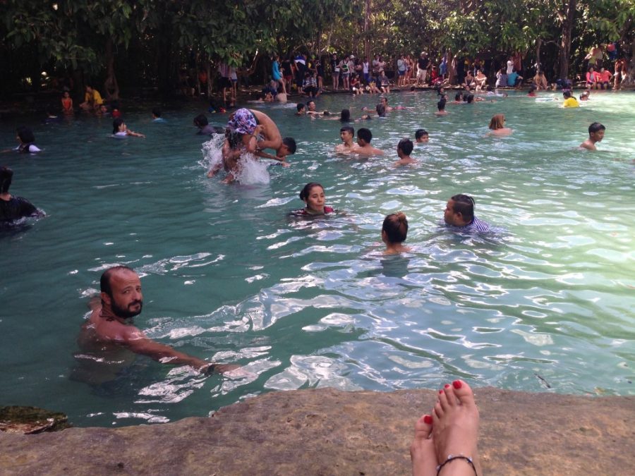 Gökhan’la oturduk konuştuk ve Krabi’de tembellik yapmamaya karar verdik. Yarın gideriz öbürgün gideriz demeden görmek istediğimiz yerleri görelim dedik. Atladık motora ilk iş Gökhan’ın geçen sene gitmek isteyip de gidemediği Emerald Pool’ a doğru yollandık. 1 saat 45 dakikalık bir motor yolculuğundan sonra vardık Emerald Pool’a. Biz daha sakin doğayla iç içe bir yer bekliyorduk doğruyu söylemek gerekirse, ama kalabalık, bağrış çağrışlarla dolu bir doğal havuzla karşılaştık. Okul gezisine gelmiş gibiydik, fotoğraflara bakarsanız ne demek istediğimi anlarsınız sanırım:)