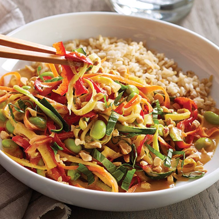 Soğan, sarımsak, zencefil, biber, havuç, mantar,brokoli,mısır, fesleğen ve belki daha bir sürü sebze karıştırılıyor ve sosu için Hindistan cevizi sütü, soya sos, acı biber, limon suyu ve şeker kullanılıyor. Garip mi geldi , gelmesin çünkü Tayland’ta acı,tatlı,ekşi hep birbiriyle karışım halinde oluyor. Leziz mi leziz yemekler ortaya çıkıyor.